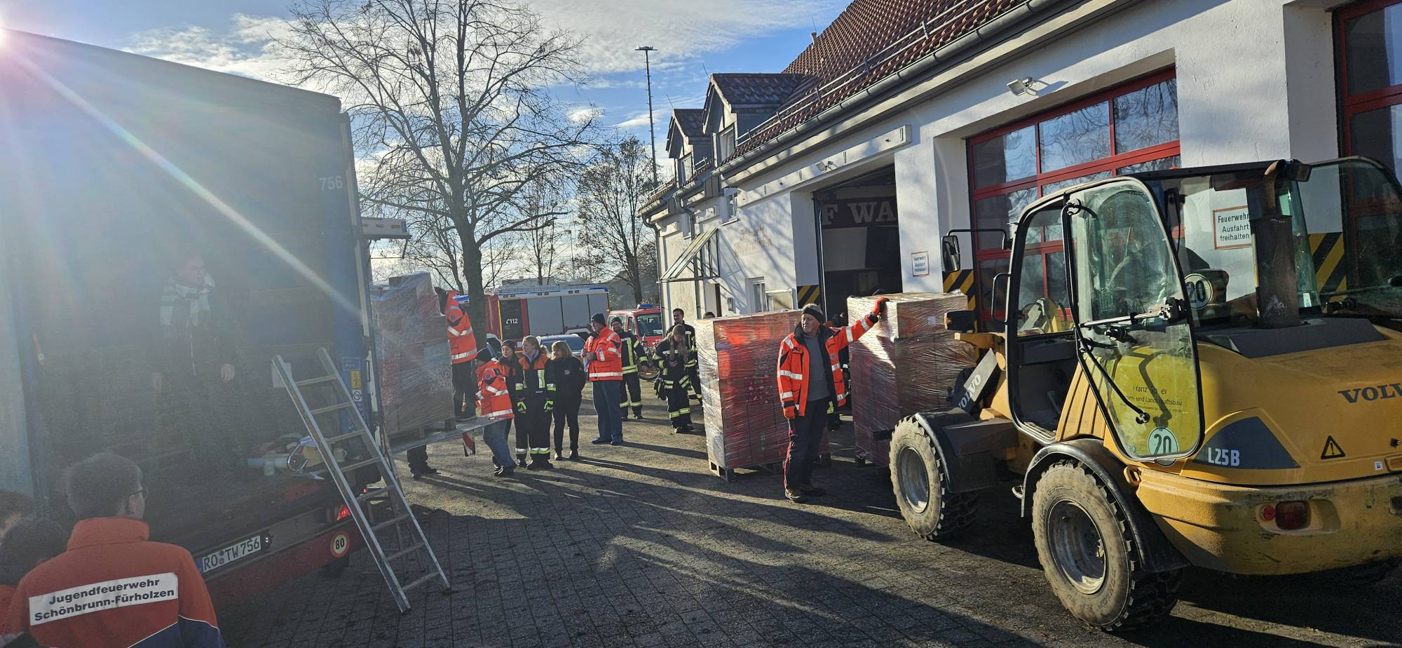 Weiter unterstützten die anwesenden Jugendfeuerwehren die Johanniter Wasserburg bei der Umladung der Pakete auf den LKW, der die Pakete am 2. WEIHNACHTSFEIERTAG zu den Ärmsten in Rumänien bringt.