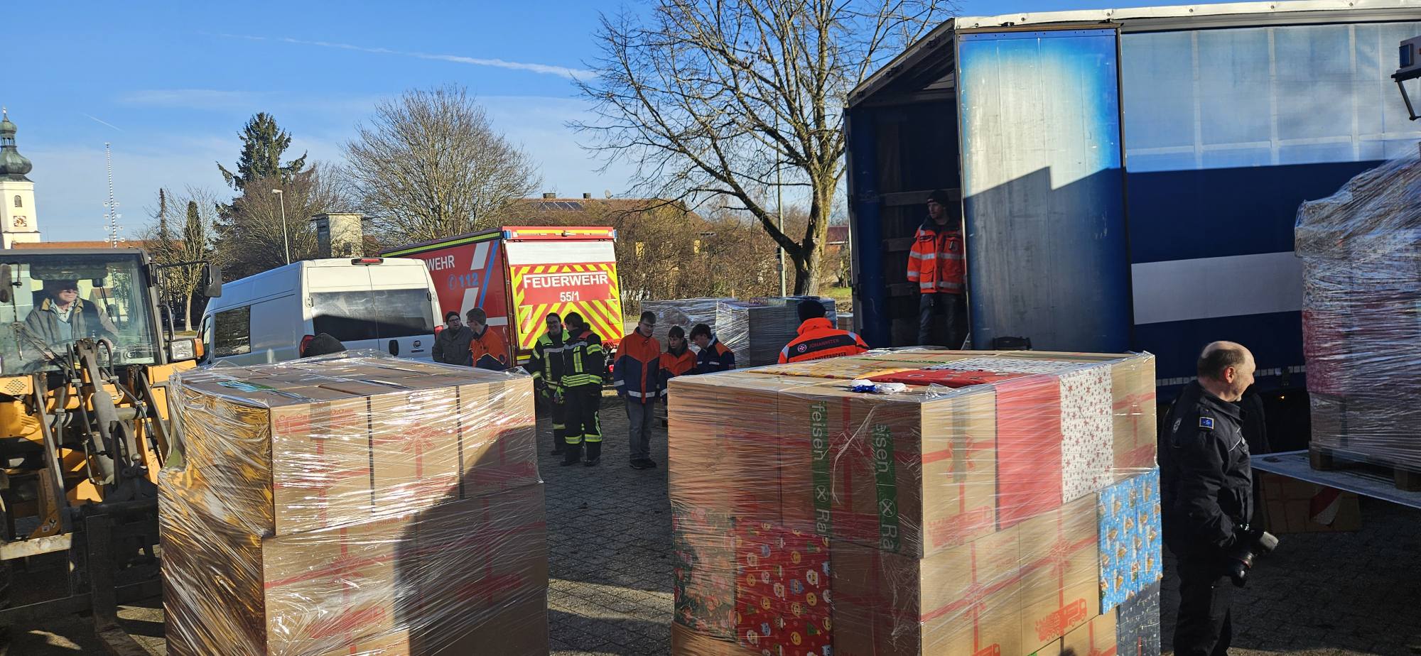 Am 20.12.2025 wurden die 260 Pakete an die Johanniter für die Aktion "Weihnachtstrucker" übergeben. Aus dem Landkreis beteiligten sich folgende Jugenfeuerwehren: Gatterberg, Walpertskirchen, Zustorf, Eicherloh und die KJF ED.
